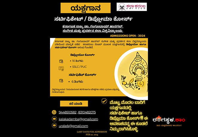 ಯಕ್ಷಗಾನದ ಸರ್ಟಿಫಿಕೇಟ್ ಹಾಗು ಡಿಪ್ಲೊಮಾ ಕೋರ್ಸ್ ಗೆ ಅರ್ಜಿ ಆಹ್ವಾನ