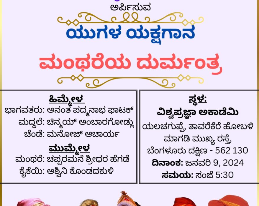 ವಿಶ್ವ ಕಲಾ ಉತ್ಸವ ಪ್ರಯುಕ್ತ ಯುಗಳ ಯಕ್ಷಗಾನ ‘ಮಂಥರೆಯ ದುರ್ಮಂತ್ರ’