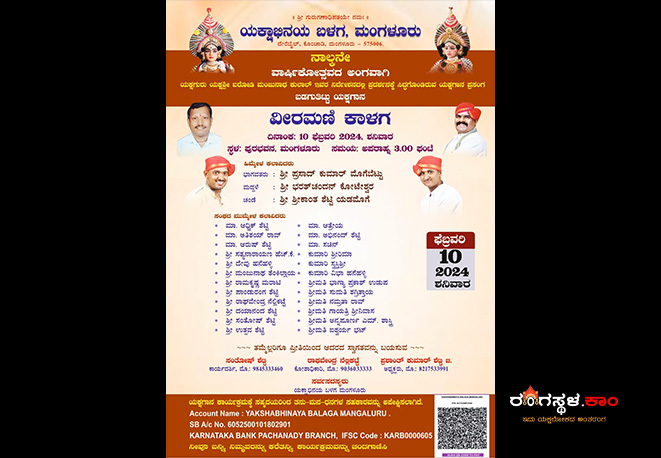 ಯಕ್ಷಾಭಿನಯ ಬಳಗದ ನಾಲ್ಕನೇ ವಾರ್ಷಿಕೋತ್ಸವ ವೀರಮಣಿ ಕಾಳಗ ಯಕ್ಷಗಾನ ಪ್ರದರ್ಶನ