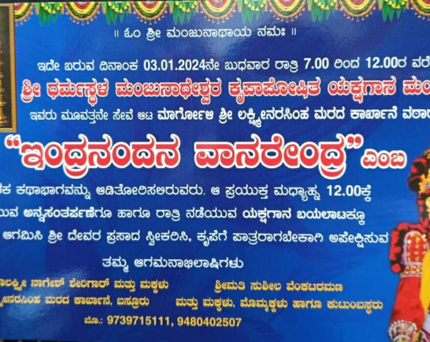 ಶ್ರೀ ಧರ್ಮಸ್ಥಳ ಮೇಳದವರಿಂದ ಇಂದ್ರನಂದನ ವಾನರೇಂದ್ರ