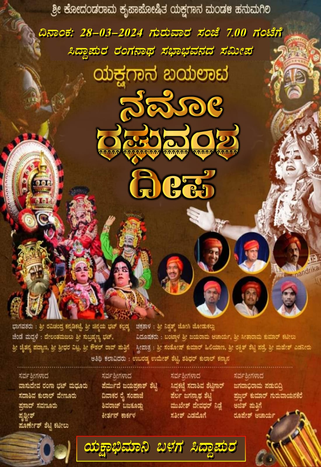 ಹನುಮಗಿರಿ ಮೇಳದವರಿಂದ ಸಿದ್ದಾಪುರದಲ್ಲಿ ನಮೋ ರಘುವಂಶ ದೀಪ
