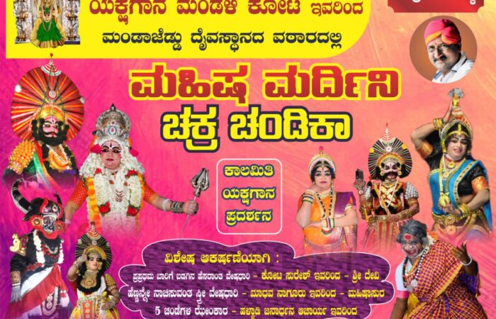 ಶ್ರೀ ಸತ್ಯವತಿ ರಕ್ತೇಶ್ವರಿ ದೇವಸ್ಥಾನದಲ್ಲಿ ಶ್ರೀ ಅಮೃತೇಶ್ವರಿ ಮೇಳದವರಿಂದ ಮಹಿಷಮರ್ದಿನಿ-ಚಕ್ರ ಚಂಡಿಕೆ