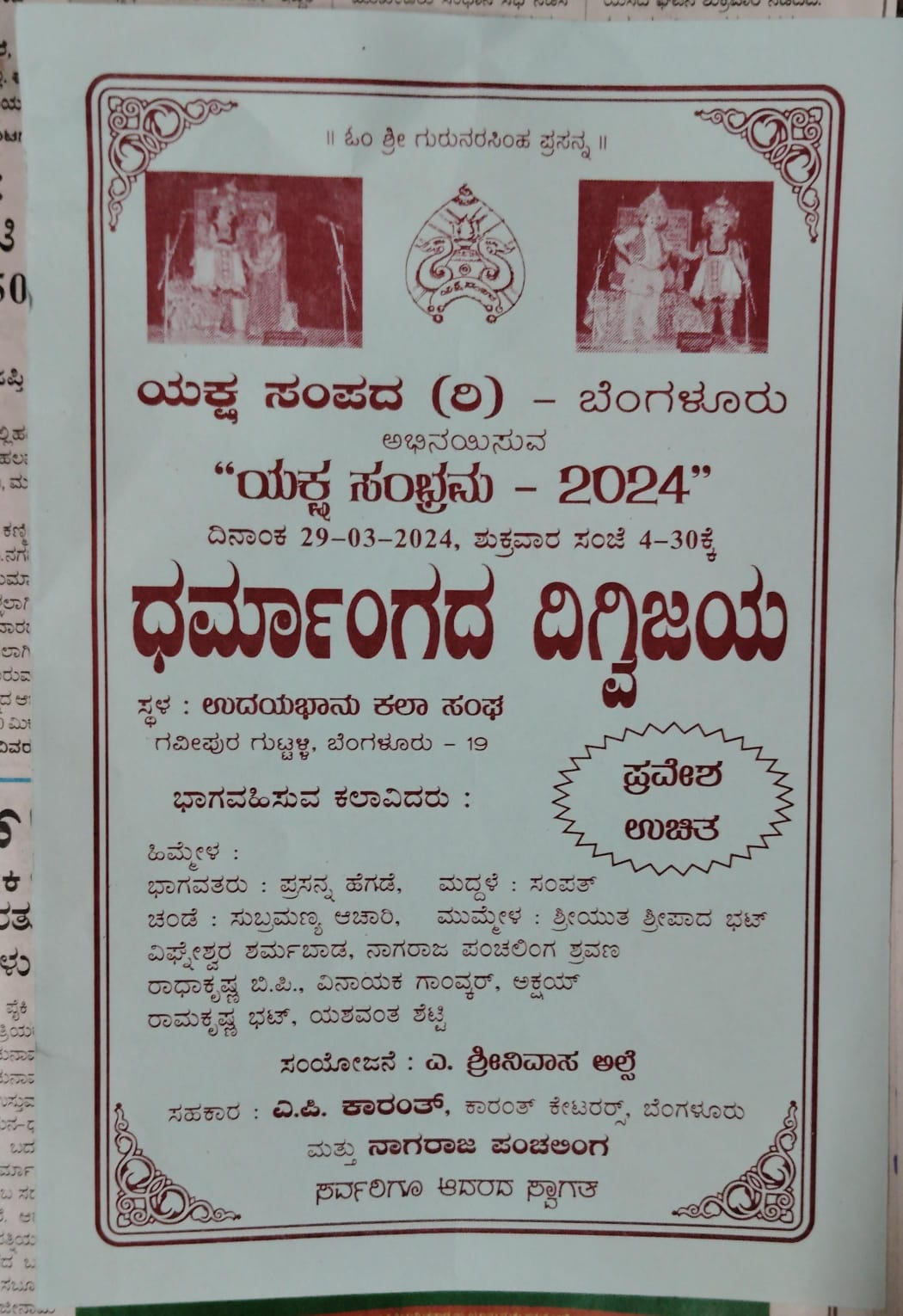 ಯಕ್ಷ ಸಂಪದ ಬೆಂಗಳೂರು ಇವರಿಂದ ಧರ್ಮಾಂಗದ ದಿಗ್ವಿಜಯ