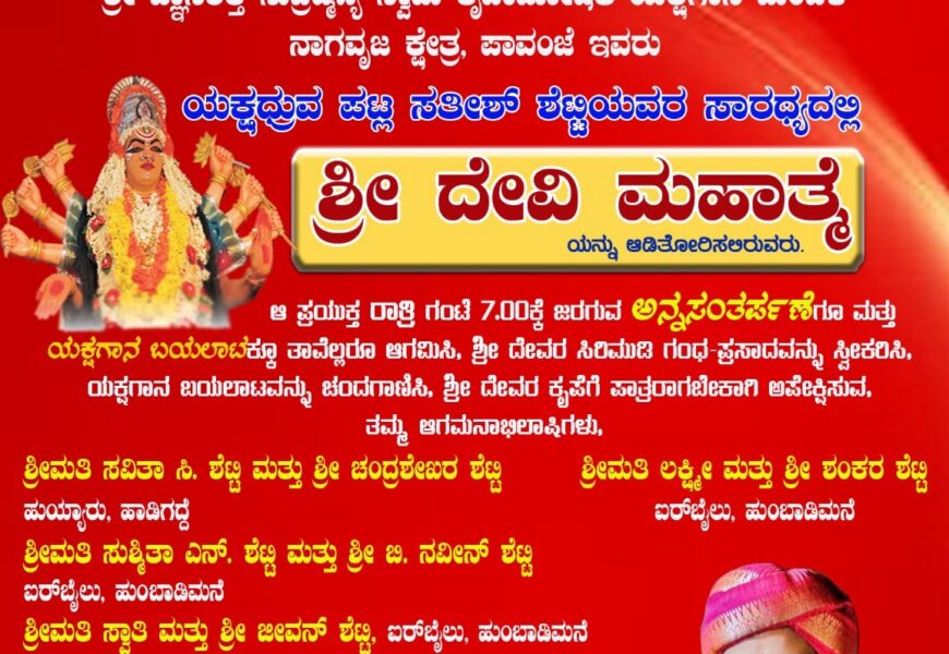 ಪಾವಂಜೆ ಮೇಳದವರಿಂದ ಐರ್ ಬೈಲು ಹುಂಬಾಡಿಮನೆ ವಠಾರದಲ್ಲಿ ಶ್ರೀ ದೇವಿ ಮಹಾತ್ಮೆ