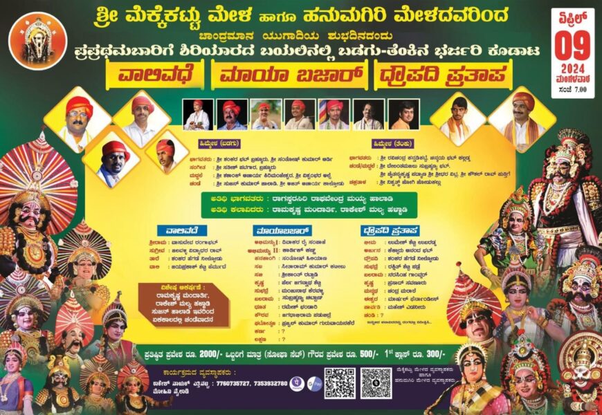 ಶ್ರೀ ಮೆಕ್ಕೆಕಟ್ಟು ಮೇಳ ಹಾಗೂ ಶ್ರೀ ಹನುಮಗಿರಿ ಮೇಳದವರಿಂದ ಬರುವ ಏಪ್ರಿಲ್ 9ಕ್ಕೆ ಸಿರಿಯಾರದಲ್ಲಿ ಭರ್ಜರಿ ಕೂಡಾಟ ಪ್ರದರ್ಶನ ಹಮ್ಮಿಕೊಳ್ಳಲಾಗಿದೆ.