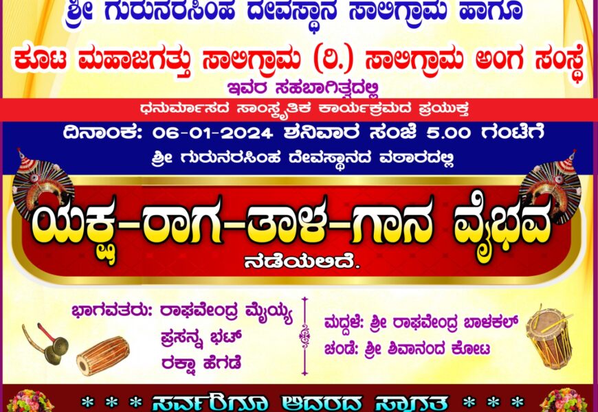 ಶ್ರೀ ಗುರುನರಸಿಂಹ ದೇವಸ್ಥಾನ ಸಾಲಿಗ್ರಾಮ ಹಾಗೂ ಕೂಟ ಮಹಾಜಗತ್ತು ಸಾಲಿಗ್ರಾಮ (ರಿ) ಸಾಲಿಗ್ರಾಮ ಅಂಗ ಸಂಸ್ಥೆ ಇವರ ಸಹಬಾಗಿತ್ವದಲ್ಲಿ