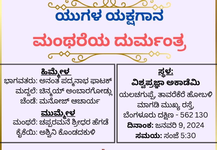 ದಿನಾಂಕ: ಜನವರಿ 9, 2024 ಸಮಯ: ಸಂಜೆ 5:30ರಿಂದ